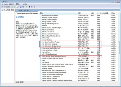 画像にある Peer~ 3つと PNRP~の設定を手動開始にする